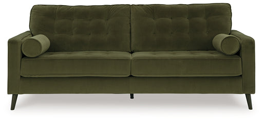 Ashley®This sofa strikes the perfect balance between elevated and eclectic. Contemporary lines and a richly hued velvet upholstery keep things chic. Desig...