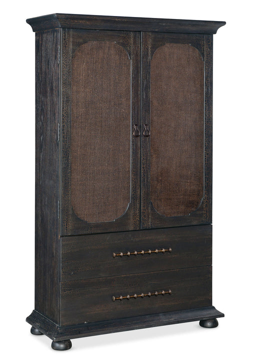 Hooker FurnishingsInspired by the rugged and picturesque Malibu landscape, the Sundance Wardrobe is crafted of Pecan Veneers and Rattan, with rattan inserts on the t...