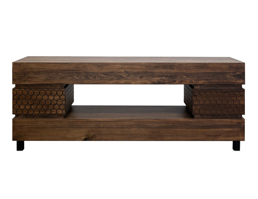 IFD Group2 Drawers TV Stand. Our Honey Collection is a stunning ensemble, showcasing a rich honey brown finish adorned with intricately carved honeycomb fig...