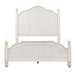 Fall into this cottage style Farmhouse Reimagined poster bed every night. The antique white finish features heavy wire brush distressing, creating a vintage cottage style. High/low veneer panels, shaped posts with decorative turned finials, and the scalloped cap rail add the perfect cottage charm, making this a bed that can work at your beach house or downtown studio. Bolt on rails and a center supported slat system ensure that this is a sturdy and reliable bed.