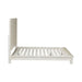 Accent your bedroom with the perfect farmhouse design, using this unique and stylish king platform bed. Crafted with rubberwood solids and knotty oak veneers, this piece features bolt on rails, a platform footboard, and a geometric pattern. This bed does not require a box spring, allowing a true platform feel. The all-over dusty finish accompanied by heavy distressing sets this piece apart from the rest of the collections.