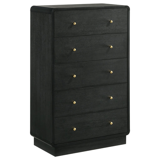 Coaster Fine FurnitureBalance and beauty meet in this five-drawer chest, where softened curves and a deep burnished black finish bring quiet depth to the room. Recessed ...