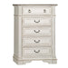 Blending of European traditional design influences makes Abbey Park a truly unique style for any living space. Warm antique finishes and artistic distressing along with grand scale makes Abbey Park a group to be passed to generations. The antique white finish with heavy chipping combines with the weathered brown white wash tops for a truly unique look. Bail and drop ring hardware in antique pewter add the finishing touch to the cases.