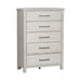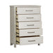 Create an inviting space with the Modern Farmhouse chest. Crafted with poplar solids and knotty white oak veneers, this piece features bottom case dust proofing, cedar lined bottom drawers, fully stained interior drawers and premium felt lined top drawers. The dusty charcoal finish with heavy distressing accompanied by washed brass elongated bar pull hardware offers a neutral palette finish and adds texture to any space.