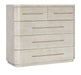 Softly sophisticated with a clean modern profile and luxe mixture of materials, the Modern Mood Bachelor’s Chest is a stunning statement piece. The case has rounded corners and a plinth base and offers five self-closing drawers. The top two drawers are felt-lined, and the bottom drawer is cedar-lined. Crafted of Oak Veneers, the nightstand is finished in the serene Diamond color and accented by metal pulls wrapped in leather.