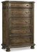 The Rhapsody Five Drawer Chest brings together classic style elements and a relaxed, rustic finish in an impassioned marriage of casual opulence. Exuberant design motifs such as acanthus leaf molding around the base, column motifs on the sides of the case and ornate bun feet infuse the piece with emotion. The walnut-colored finish is inspired by the rustic nature of reclaimed woods in beautiful patinas. The bottom drawer is cedar-lined.