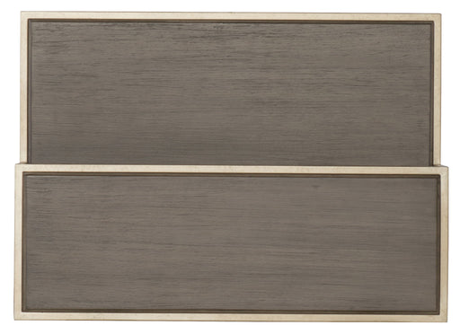 Hooker FurnishingsCurvy and elegant, the Elixir Two-Drawer Nightstand combines metal trim and a metal X-stretcher in a champagne silver finish with a serene gray bei...