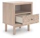 | Details | Made with engineered wood (MDF/particleboard/plywood) and decorative laminate for the right balance of affordability and durability, Smooth, light finish with replicated oak grain, Decorative laminate replicates natural or man-made material surfaces with consistent color, pattern and texture, Knob with black finish, Smooth-gliding drawer, Drawer interior is lined with a faux linen laminate for a clean, finished look, Display shelf, Slim-profile USB charging port, Power cord included; UL Listed, Assembly required | |