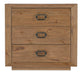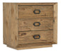 With an American West vintage charm, the Big Sky Nightstand has a straightforward silhouette design crafted of Pecky Hickory Veneers with a solid-wood edged top. Finished in the warm and rustic Vintage Natural, the piece is accented by dark brushed bronze pulls in a buckle style. With three self-closing drawers, the top drawer has a removable felt liner. There’s a power supply and a cord clip on the back, and the bottom drawer is cedar-lined.