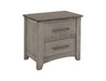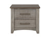 2 Drawer, Nightstand. The Ridge nightstand features two spacious drawers, offering plenty of storage for all your bedroom essentials. It features sleek metal handles that enhance its modern aesthetic. Made from Melina and poplar wood, this collection guarantees durability and timeless appeal. The elegant light gray finish and brown tops blend seamlessly with any décor style. Additionally, the channeled design adds a touch of sophistication and texture to the furniture.