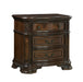 Elegant, traditional styling in a grandly scaled bedroom collection, Royale offers all the essentials of modern life in a package that honors designs from antiques past. Olive ash burl accents combine with a deep, brown cherry finish in a truly opulent presentation.Nightstand with USB charging ports.