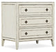 Just add candlelight. With clean lines and a creamy white finish accented with champagne and silver tipping, the Anastasie nightstand is refined elegance with a whisper of Hollywood glamour. As practical as it is pretty, there is a power bar with 3 electrical outlets and one live USB port, along with a light underneath with a three-intensity touch activation. The top drawer is lined with gray and white designer wallpaper, and the bottom drawer is cedar lined.