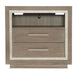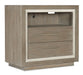 In a crisp two-tone finish combining a gray washed oak with a contrasting textured light gray color, the Serenity Balboa Two-Drawer Nightstand brings the organic textures of cottage waterfront living to your space. Crafted of Oak Veneers and resin, The nightstand has two drawers with soft-close drawer guides and an open area above the drawers. There’s a USB charger with two ports on the back and a cord clip.