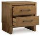 If you appreciate minimalistic style, this nightstand is the ideal option. Its soft and simple finish has a laid-back sensibility, blending relaxed contemporary design with a trendy allure. The spacious drawers are accented with stylish metal drawer pulls in a darkened bronze tone. What a delightful addition to your casual-chic decor.