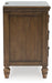 | Details | Made with hardwood solids, veneers and MDF substrates, Brown finish, Oil-rubbed bronze-tone knobs, 2 drawers with fully finished interior, dovetail construction and heavy duty ball-bearing side glides (top drawer felt lined), Turned feet, 110V power supply with USB-A and USB-C charging ports, Power cord included; UL Listed | |