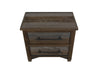 2 Drawer, Nightstand. Elevate your bedroom environment with the Town collection, a beautiful blend of rustic style and modern sophistication. Each piece features a multi-step lacquer finish that highlights rich brown and gray tones, enhancing the wood's natural beauty. Crafted from pine and poplar, this collection boasts a wire-brushed wood texture for added character. This beautifully designed bedroom set will transform your space and leave a lasting impression. make The nightstand offers ample storage with two spacious drawers. Iron center handle pulls add an industrial touch, beautifully contrasting with the warm design.