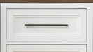 Tactile, yet refined, and always modern. Clean lines meld with comfortable textures and tones in our total home collection, Beckett. Simple farmhouse details such as block feet, beveled framed drawer fronts, planking and X motifs create visual interest in a modern way and without feeling too cluttered. Dark Oak tops on quartered white oak veneer sit atop Natural White painted bases. Select items offered in Aged Black that repeats the finish on hardware and accents.