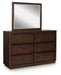 | Details | PCB857B7: Includes canopy, upholstered headboard, footboard, rails, posts and slats, Made with hardwood solids, mango wood veneer and MDF substrates , Side rails feature laminated solid hardwood slat support rails (or LVL) with glued and screwed blocking for added strength, Complex, rich dark brown finish, Foam headboard cushion with polyester upholstery , Measure room, including ceiling height, to ensure bed clears fans and light fixtures, Foundation/box spring required, sold separately , Mattress available, sold separately , USB-A and USB-C charging ports, Power cord included; UL Listed, Assembly required, PCB857B1: Made with hardwood solids, mango wood veneer and MDF substrates , Complex, rich dark brown finish, Full-length metal rail pulls with matte black finish, 6 smooth-gliding drawers with fully finished interiors, dovetail construction and heavy-duty ball-bearing side glides (top drawers felt lined), Mirror attaches to back of dresser, Soft rounded pilasters, Raised plinth base, | |