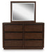 | Details | PCB857B6: Includes canopy, upholstered headboard, footboard, rails, posts and slats, Made with hardwood solids, mango wood veneer and MDF substrates , Side rails feature laminated solid hardwood slat support rails (or LVL) with glued and screwed blocking for added strength, Complex, rich dark brown finish, Foam headboard cushion with polyester upholstery , Measure room, including ceiling height, to ensure bed clears fans and light fixtures, Foam cushion with polyester upholstery , Foundation/box spring required, sold separately , Mattress available, sold separately , USB-A and USB-C charging ports, Power cord included; UL Listed, Assembly required, PCB857B1: Made with hardwood solids, mango wood veneer and MDF substrates , Complex, rich dark brown finish, Full-length metal rail pulls with matte black finish, 6 smooth-gliding drawers with fully finished interiors, dovetail construction and heavy-duty ball-bearing side glides (top drawers felt lined), Mirror attaches to back of dresser, Soft rounded pilasters, Raised plinth base, PCB857-92: Made with hardwood solids, mango wood veneer and MDF substrates, Complex, rich dark brown finish, Metal rail pulls with matte black finish, 2 smooth-gliding drawers with fully finished interiors, dovetail construction and heavy-duty ball-bearing side glides (top drawer felt lined), Soft rounded pilasters, Raised plinth base, | |