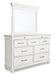 | Details | B777B8: Includes king panel headboard and footboard with king panel rails, Made with solid wood, veneers and engineered wood, Distressed whitewash finish, Foundation/box spring required, sold separately, Mattress available, sold separately, Assembly required, B777B1: Includes dresser and mirror, Made with solid wood, veneers and engineered wood, Distressed whitewash finish, Dark gray pewter-tone finished metal hardware, 7 smooth-gliding drawers, plus 2 small-scaled accessory drawers, Mirror attaches to back of dresser, Assembly required, B777-46: Made with solid wood, veneers and engineered wood, Distressed whitewash finish, Dark gray pewter-tone finished metal hardware, 7 smooth-gliding drawers, B777-93: Made with solid wood, veneers and engineered wood, Distressed whitewash finish, Dark gray pewter-tone finished metal hardware, 2 smooth-gliding drawers, plus 1 small-scale top accessory drawer, | |