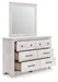 | Details | Includes dresser and mirror, Made with engineered wood (MDF/particleboard/plywood) and decorative laminate for the right balance of affordability and durability, Whitewash replicated worn through paint over replicated wood grain with authentic touch, Decorative laminate replicates natural or man-made material surfaces with consistent color, pattern and texture, Hardware with dark bronze-tone finish, 6 smooth-gliding drawers, Mirror attaches to back of dresser; can also be mounted on wall vertically, Safety is a top priority, clothing storage units are designed to meet the most current standard for stability, ASTM F 2057 (ASTM International), Drawers extend out to accommodate maximum access to drawer interior while maintaining safety, Minor assembly required | |