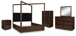 Dilenno Queen Canopy Bed with Mirrored Dresser, Chest and Nightstand