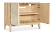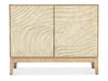 The two-tone Retreat Carved Nightstand has a tranquil personality with a modern twist. Featuring carved wave motif door fronts, it is crafted of Oak Veneers and Resin. The sand-colored Dune finish on the case contrasts with the lighter cream-colored finish on the textured door fronts. Behind the two doors with soft-close hinges and touch latches is one adjustable shelf. Elevated on slim shaped legs, the nightstand comes with levelers.