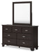 | Details | B441B2: Includes panel headboard, footboard, rails and slats, Made with hardwood solids, engineered wood veneer and MDF substrates, Dark brown finish, Floating panel headboard, Picture frame footboard, Foundation/box spring required, sold separately , Mattress available, sold separately, Assembly required, B441B1: Includes dresser and mirror, Made with hardwood solids, engineered wood veneer and MDF substrates, Dark brown finish, Metal bar pulls with bright nickel-tone finish, 7 smooth-gliding drawers with dovetail construction and metal center guides, Drawer interiors are lined with a wood grain laminate for a clean, finished look, Top moulding on dresser, Mirror attaches to back of dresser, | |