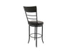Wooden Frame & Metal Base, 30" Upholstered Barstool. This stylish bar stool perfectly blends contemporary and natural elements, making it an ideal addition to spaces like kitchen islands or bar areas, combining both functionality and elegance. The stool features a round cushioned seat upholstered in faux leather for added comfort. Its wooden backrest adds a warm, natural touch to the overall design, while horizontal metal bars enhance the modern aesthetic and provide additional support. The slightly curved metal legs not only ensure stability but also contribute to the stool's overall appeal. A circular footrest connects the legs, providing extra comfort. The Blackburn collection brings a touch of sophistication and exceptional comfort to your interior décor. Its unique design makes it a standout piece in any room.