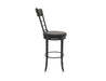 - The backrest features a wooden panel, adding a warm, natural element to the stool's design.