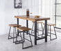 You'll love to come to dinner with this counter height set from Landon! This transitionally styled mixed media set presents a substantial look in a medium-sized dining package. The beefy table top features birch veneers in a natural honey finish and is paired with a weighty iron base. The wooden seated stool has a rustic appearance while sporting a shaped seat for added comfort.