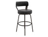 • The stool features a comfortable, round, cushioned seat upholstered in brown faux leather and includes a swivel mechanism.