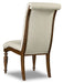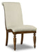 With a world-traveled pedigree, designer details and exquisite comfort come together in the Archivist Side Chair to create a versatile chair of inviting elegance. From the roll-top back to the carved legs to the upholstered tack trim around the seat and back, the Archivist Side Chair will welcome guests to linger around the table or in the family room as an extra seating option. The soft pecan-colored finish over rustic veneers contrasts beautifully with the neutral colored Aubergine Linen fabric on the seat and back for a character-filled and authentic look.