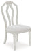 Transform your home into a haven of timeless elegance with this dining chair. Its traditional silhouette, adorned in a classic antiqued white finish, is paired with plush cushioning covered in light pearl gray upholstery. Whether you're settling in at mealtime or working from home, this chair serves your sense of relaxed refinement beautifully.