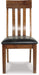 Comfortably contoured with a rake back design, this dining room side chair beautifully captures the essence of rustic refinement. Its plushly upholstered faux leather seat makes pulling up a chair so much more enticing. Makes for easy cleanup, too.