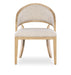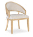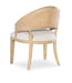 Offered in a modern yet timeless barrel-style back silhouette, the versatile Retreat Chair combines wood, cane and fabric in a chic organic design. The chair frame is finished in the sand-colored, complemented by the Neo Cream performance fabric on the upholstered seat and back and raffia cane on the back of the chair back.