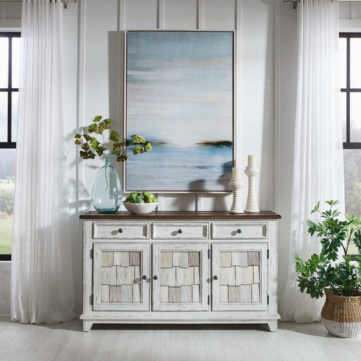 Legends HomeThe Americana 66 inch Server boasts a refreshing coastal twist on traditional style. Skillfully crafted from Rubberwood Solids and Birch Veneers, t...
