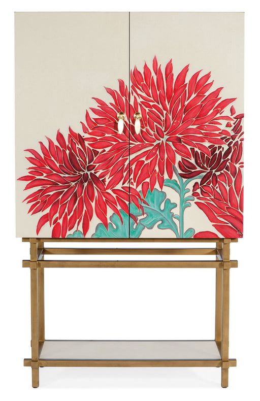 Hooker FurnishingsEntertain in style with the Eleana Bar on Stand, a show-stopping bar cabinet that blends Light Caramel walnut veneers with Sunlit Bronze metal acce...