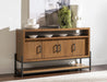 The Midland total home collection offers a heartland-inspired, feel-good casual look that seamlessly blends styles from casual transitional to modern, and from Craftsman to Boho. Featuring a Warm Amber finish and Matte Black hardware, each piece is crafted from Hardwood Solids and Walnut. A standout element of the collection is the wood basket weave design, elegantly showcased on chair backs, door fronts, and the panel headboard. With a young and fresh vibe, the collection includes bedroom, dining, occasional, home office, and home entertainment.