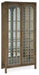 Create a calming resort-inspired retreat in your home with the focal-point-worthy Sundance Display Cabinet. The circular patterned metal fretwork over tempered glass on the door fronts is a designer detail, along with an antique mirror back panel. Behind the doors are 4 adjustable wood-framed glass shelves illuminated by a 3-intensity touch switch. Crafted of Pecan Veneers, the cabinet is finished in Cliffside, a rich, dynamic brown finish with light burnishing on the edges.