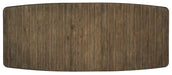 Inspired by the iconic Pacific Coast Highway, the Sundance Dining Table combines a Solid Wood-edge top crafted of Pecan Veneers with an airy double base. Finished in Cliffside, a rich brown with light burnishing on the edges, the table offers two 18-inch leaves, extending the table to 118 inches, accommodating 2 arm chairs and 6 side chairs with the leaf included.