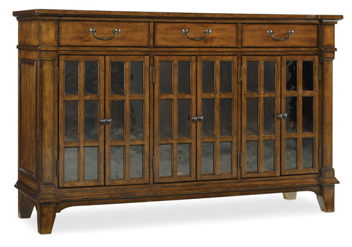 Hooker FurnishingsSet a buffet of livable luxury. The timeless Chatelet Buffet features two mirrored fretwork doors, a scalloped base and the soft amber Caramel Frot...