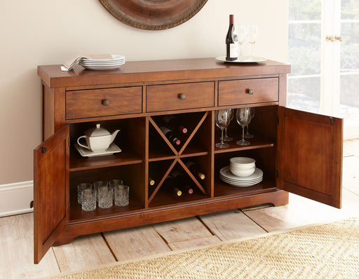 Steve Silver FurnitureModern farmhouse styling lends a touch of sophistication to the casual comfort of Cayla dining. The server features 2 doors, 2 drawers, and adjusta...