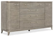 In a softly rounded form, the Affinity Server combines a greige sand-blasted finish on Quartered Oak Veneers with cream and pewter bar pulls and flared legs. With two doors, there is one adjustable wood shelf behind each door. Five drawers. The top left drawer has drop-in felt silverware and the top right drawer has a drop-in felt liner. The bottom drawer is cedar lined.