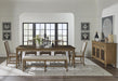 Crafted of Hardwood Solids with Oak Veneers in a Dusty Barley finish, the Beacon Hill bedroom and dining furniture collection has an Arts & Crafts-inspired design that offers a fresh traditional look. Striking grid-like wood fretwork on the headboards and some case pieces are finished in a contrasting metal-colored finish that matches the Oiled Bronze hardware.