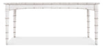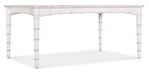 Capturing the vintage charm of the coastal South and the tropical craftsmanship of the West Indies, the Charleston Rectangle Dining Table has bamboo-motif accents and slender bamboo-style legs. The wood table has a Solid Wood Edge Top and is finished in White Heron, a softer interpretation of the classic Southern limestone white with a slightly brighter sheen, delivering an heirloom-quality finish. With one 20-inch leaf in place, the table extends to 88 inches long. The table accommodates 4 side chairs and two arm chairs without the leaf and 6 side chairs and two arm chairs with the leaf.
