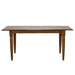 Dining featuring warm tobacco finish in multiple sizes to fit every need. Butcher block top revealed under the impeccable finish surrounded by double header wood pencil post chairs. Choose from small pedestal, casual drop leaf, or rectangular butterfly leaf tables to suit your unique needs.