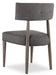 In an authentic mid-century modern silhouette, the versatile Curata Upholstered Chair exudes a curated chic appeal with a fabric seat and button-tufted back covered in Edward Graphite, with the wood frame finished in a medium greige color called Mountain Modern.