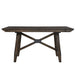 Gather the family around the Double Bridge gathering table set. Crafted of rubberwood solids and acacia veneers, this kit features a dark finish with wire brushing. The table offers two 12-inch leaves, one for each end of the table, to accommodate guests or a larger family, and an easy glide track system for added convenience. The chairs feature linen upholstery on the seats and nylon chair glides to protect your flooring. The Double Bridge Dining defines the rustic side of casual. The sleek design is optimal for any space.