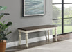 Add a touch of rustic charm to your space with the Joanna Bench. With its ivory and mocha wire-brushed finish, turned legs, and farmhouse styling, this bench is both functional and stylish. Crafted with high-quality materials and expert craftsmanship, the Joanna Bench is built to last. Its solid construction ensures that it can withstand frequent use, while its farmhouse design adds character and warmth to any room. Measuring 44 inches in length, the Joanna Bench is versatile enough to be used as a seating option in the dining room, living area, or even in the entryway. Its unique two-tone finish and turned legs add a touch of sophistication to any setting, making it a perfect addition to any farmhouse-influenced home..